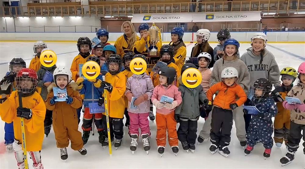 Igår firade vi våra landslagsspelare som kom hem från Finland med guldmedaljer, pokal och supergulliga ritblock till skridskoskolan & tiger. Så inspirerande för våra unga spelare att få träffa våra landslagshjältar!